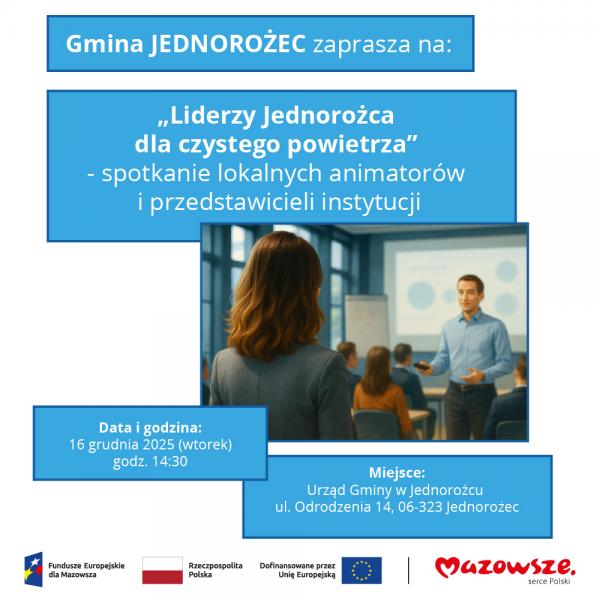 Spotkanie odbywa się w ramach projektu „Mazowsze bez smogu”, współfinansowanego przez Unię Europejską ze środków Europejskiego Funduszu Rozwoju Regionalnego w ramach Programu Fundusze Europejskie dla Mazowsza 2021–2027.