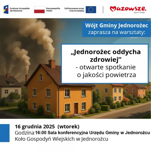 Serdecznie zapraszamy mieszkańców Gminy Jednorożec do udziału w warsztatach i wspólnego działania na rzecz czystszego powietrza oraz zdrowego środowiska dla wszystkich.