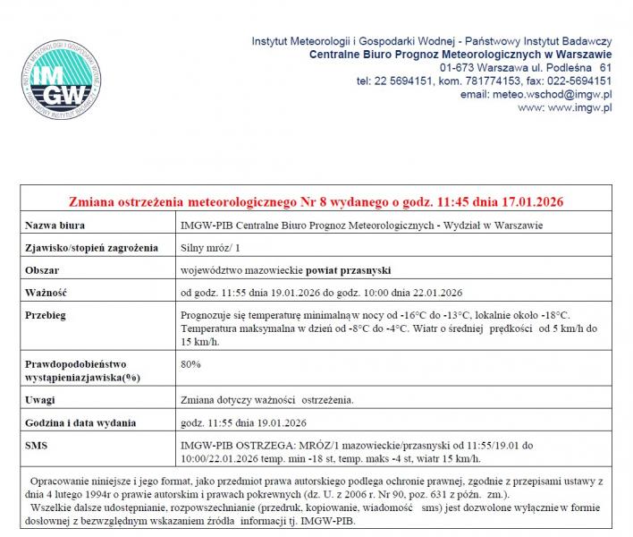 o wywieszeniu w siedzibie Urzędu Gminy Jednorożec, przy ul. Odrodzenia 14 (I piętro) na okres 21 dni, tj. w dniach od 19.01.2026 r. do 09.02.2026 r. oraz na tablicy informacyjnej sołectwa Jednorożec