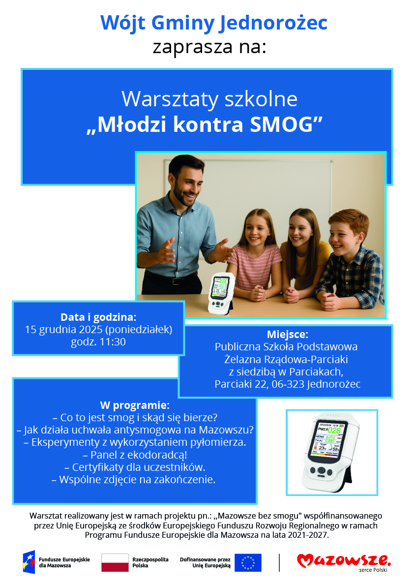 Warsztaty realizowane są w ramach projektu „Mazowsze bez smogu”, współfinansowanego przez Unię Europejską w ramach programu Fundusze Europejskie dla Mazowsza 2021–2027.