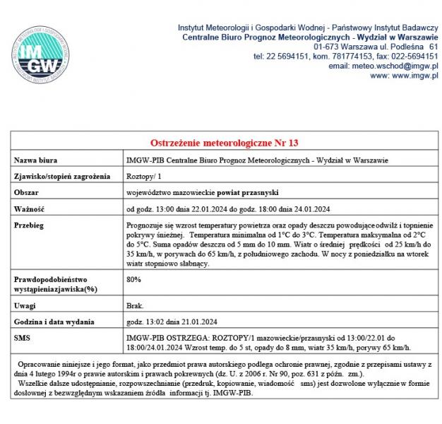 Jednorożec, dnia 12 stycznia 2024 r.