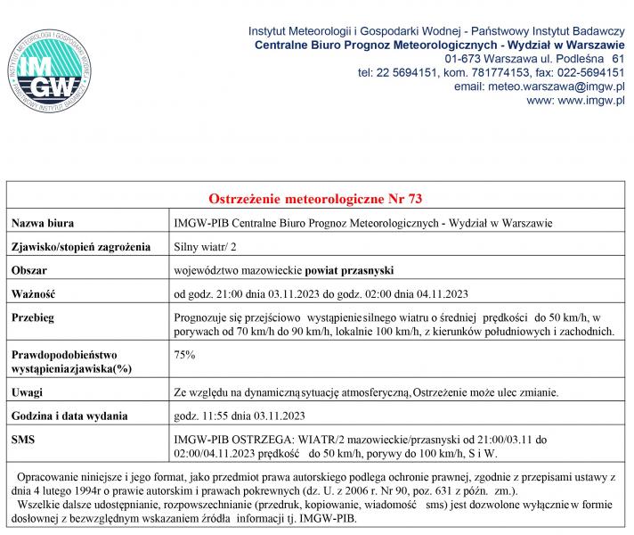 Jednorożec, dnia 27 października 2023 r.