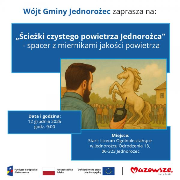 Podczas wydarzenia uczestnicy otrzymają „Ścieżki czystego powietrza Jednorożca”, opracowany specjalnie dla mieszkańców Mazowsza. Publikacja zawiera praktyczne porady dotyczące wymiany nieefektywnych źródeł ciepła, zasad prawidłowego spalania oraz informacji o programach wsparcia, takich jak „Czyste Powietrze”. Dla najmłodszych przygotowano także kolorowankę edukacyjną.