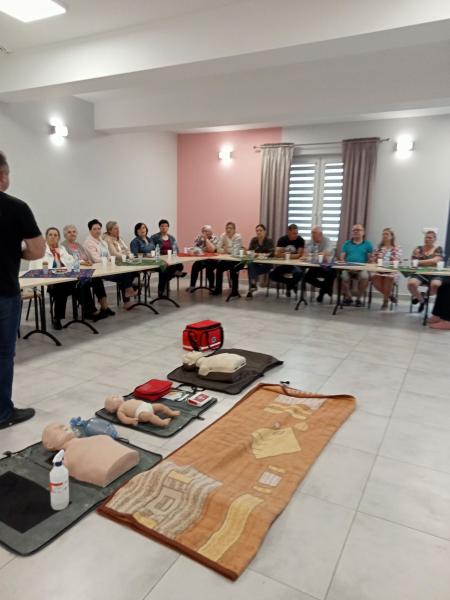 grup, które skorzystały z bezpłatnego szkolenia poprowadzonego przez Krzysztofa Drężek, szkoleniowca współpracującego z Urzędem Gminy w Jednorożcu. Spotkania szkoleniowe trwały ok. 2 godzin o uzgodnionej wcześniej porze i wyznaczonym miejscu przez grupę. Ekipy liczyły od 10 do 25 osób. Były różnorodne, a uczestniczący szkoleń byli w przeróżnym wieku: dzieci, młodzież i dorośli z czego tylko można się cieszyć. Nigdy nie wiadomo, kto komu będzie musiał udzielić pomocy. Szkoleniowiec zaprezentował resuscytację, którą uczestnicy mogli wykonać na trzech różnych fantomach przedstawiających niemowlaka, dziecko i osobę dorosłą. Ponadto szkoleniowiec omówił postępowanie w przypadku utraty przytomności, a co za tym idzie zastosowanie „pozycji bezpiecznej”, gdzie zainteresowani ćwiczyli sami na sobie. Działania te spotkały się z dużym zainteresowaniem i chętnych nie brakowało. Jak stwierdzili uczestnicy: „Nie ma lepszej nauki, jak ćwiczenia na żywych osobach”. Omawiano postępowanie w razie wypadku, urazu lub nagłego ataku chorób, m.in. w przypadku omdlenia, zachłyśnięcia, podtopienia, ataku padaczki, utraty przytomności, zatrzymaniu akcji serca. Ze szkolenia skorzystały: