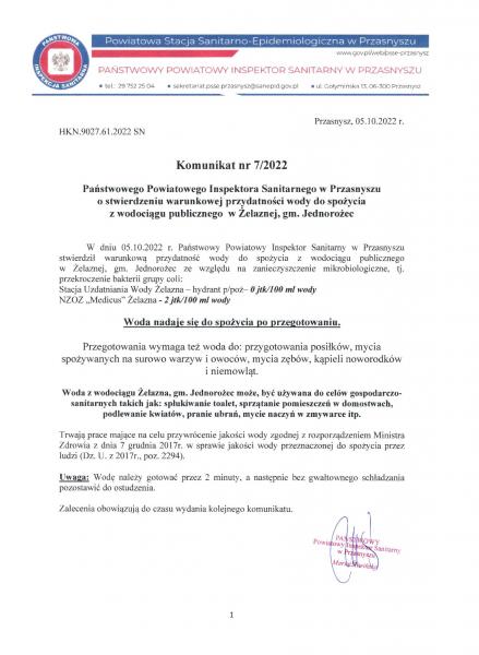 W związku z powyższym, może wystąpić przejściowy spadek ciśnienia oraz pogorszenie jakości wody. Pogorszenia jakościowe mogą utrzymywać się jeszcze w następnych dniach po płukaniu.