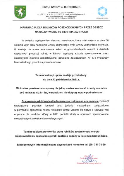 Termin odbioru protokołów przez rolników zostanie ustalony po przeprowadzeniu szacowania strat i zostanie podany w kolejnym komunikacie.