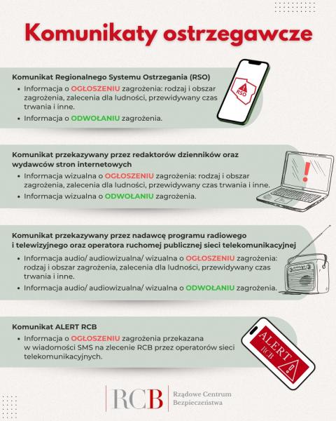 więcejNad naszym bezpieczeństwem codziennie czuwają tysiące funkcjonariuszy służb, żołnierzy oraz pracowników różnych instytucji państwa. System bezpieczeństwa to także ostrzeganie Ciebie i Twoich bliskich przed różnego rodzaju zagrożeniami, czy to katastrofami naturalnymi, czy o innym charakterze. W tym celu istnieją alerty RCB oraz syreny alarmowe.