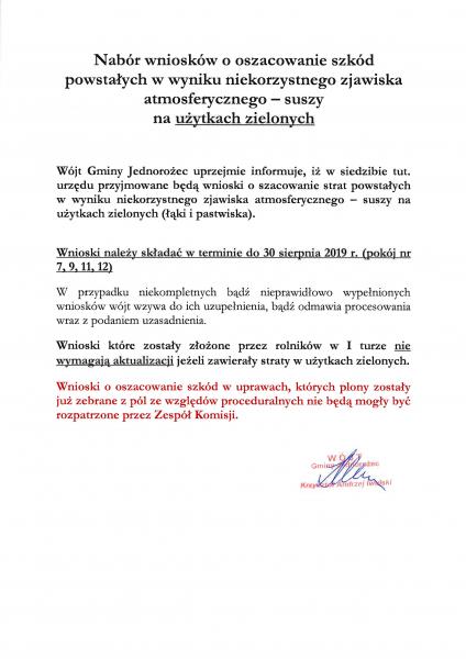 (zgodnie z zarządzeniem Nr 95/2019 Wójta Gminy Jednorożec z dnia 5 sierpnia 2019 r.)