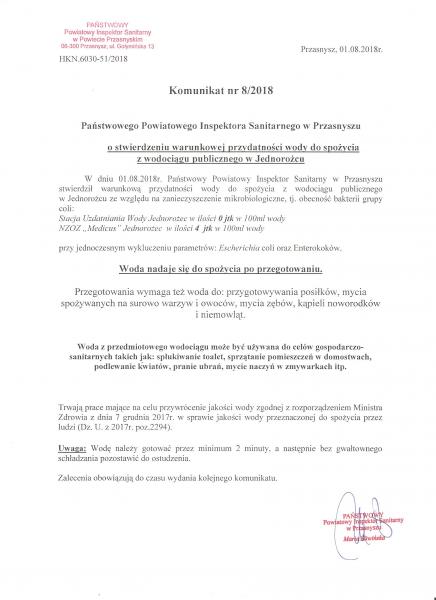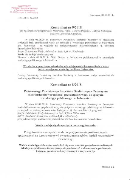 - Informacja o stanie jakości wody przeznaczonej do spożycia