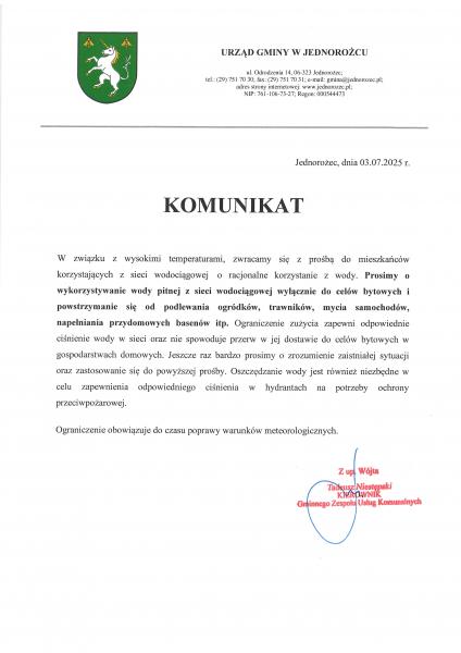 - Regulamin dostarczania wody i odprowadzania ścieków na terenie gminy Jednorożec