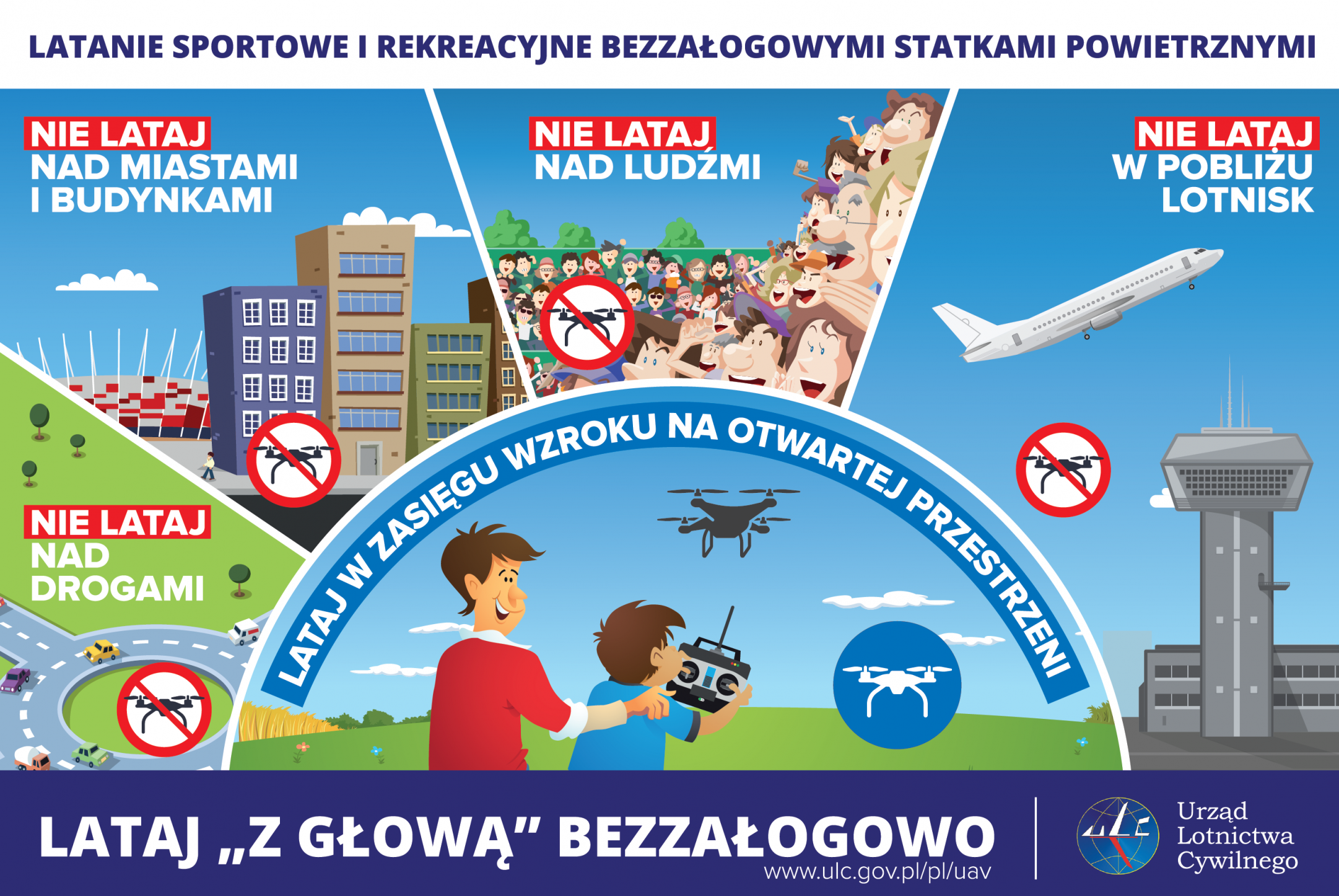 Urząd Lotnictwa Cywilnego, dostrzegając pilną konieczność podniesienia wiedzy o bezpiecznym użytkowaniu dronów w przestrzeni powietrznej, przygotował spot edukacyjny przedstawiający podstawowe zasady sportowego i rekreacyjnego wykonywania lotów z wykorzystaniem UAV w polskiej przestrzeni powietrznej. W ramach akcji uruchomiona została strona internetowa http://latajzglowa.pl/ , na której zamieszczone zostały podstawowe informacje na temat bezpiecznego korzystania z bezzałogowych statków powietrznych.