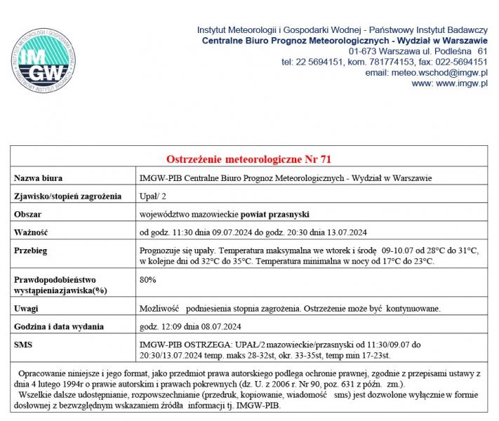 o wywieszeniu w siedzibie Urzędu Gminy Jednorożec, przy ul. Odrodzenia 14