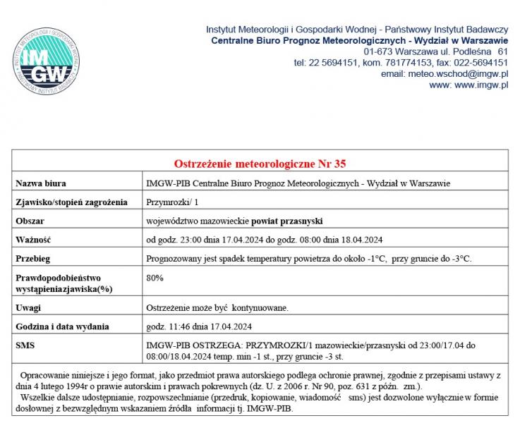 - Informacja o stanie jakości wody przeznaczonej do spożycia
