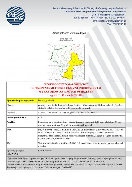 OSTRZEŻENIA METEOROLOGICZNE ZBIORCZO NR 48