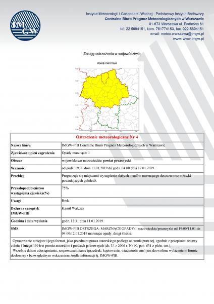 Ostrzeżenie meteorologiczne Nr 4 OPADY MARZNĄCE