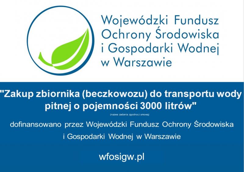 Gmina Jednorożec otrzymała dofinansowanie na beczkowóz do transportu wody pitnej 3000 litrów w ramach programu "Wsparcie jednostek samorządu terytorialnego w zakresie zapobiegania i likwidowania zagrożeń dla środowiska" Wojewódzkiego Funduszu Ochrony Środowiska i Gospodarki Wodnej w Warszawie. Szacunkowa wartość inwestycji 40 836 zł, kwota dofinansowania 16 600 zł.