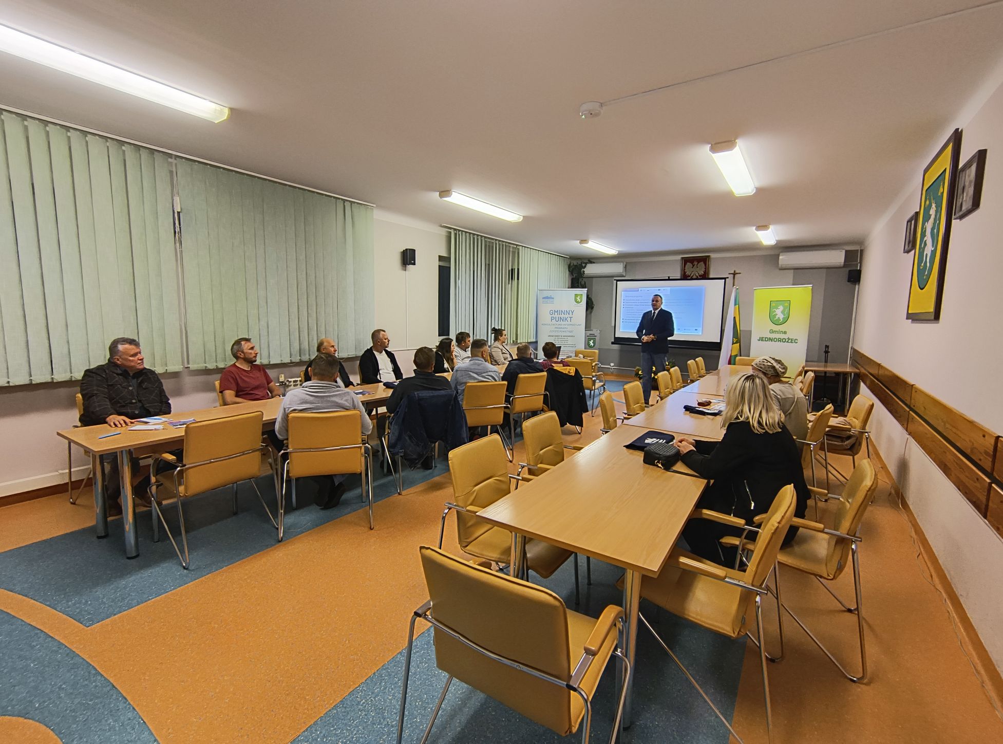 W dniu 22 września 2025 r. w budynku Urzędu Gminy w Jednorożcu odbyło się kolejne w tym roku spotkanie informacyjne dotyczące rządowego programu „Czyste Powietrze”. W wydarzeniu udział wzięli: